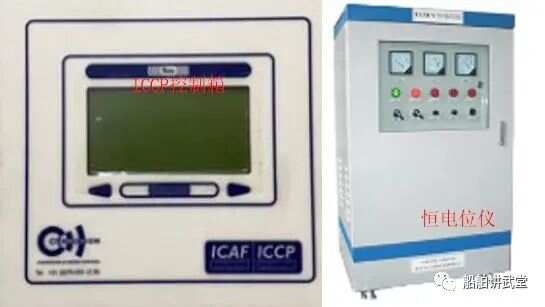 ICCP控制箱一般安装在机舱中,里面有降压变压器、整流器、感应器、保险丝、开关、冷却风扇以及LCD显示屏等。其主要功能是通过参比电极来监测船体电位,向辅助阳极输出一定量的补偿直流电。日常要检查ICCP的电压、电流情况并做好记录,各参数要符合说明书的要求。目前广泛使用的有整流器和恒电位仪两种直流电源,其作用是根据船体浸水面积、水质等的变化提供一定大小的稳定电流。在船体浸水面积、水质等变化不大的情况下通常采用手动控制的整流器;而在船体浸水面积、水质等变化频繁时,一般采用自动控制的恒电位仪,使船体浸水部分的电位控制在最佳保护电位范围内。
