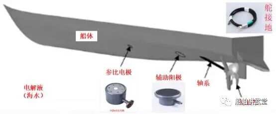 外加电流阴极保护系统的工作主体除了 ICCP控制箱和智能控制的直流电源外,还设有将直流电源输出的直流电流传递到船体上的辅助阳极、作为参照比较的参比电极以及相关连接电缆和绝缘屏蔽材料等组成,当然啦,要想形成一个完整的工作回路,海水是必不可少的。
